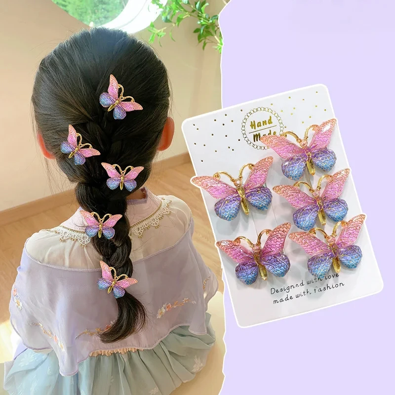 5PCS Sweet Stereoscopic Color Gradient Cute Baby Hairpins Kids Hair Clips Children Headwear Princess Barrette Girls Accessories